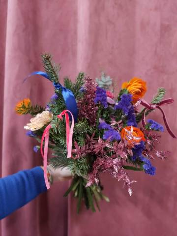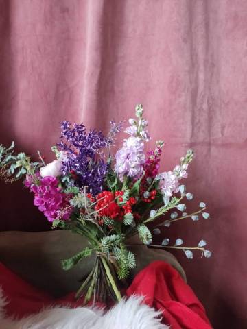 C'est un bouquet de fleurs fraîches françaises de saison, assemblées avec soin, coloré à souhait pour un Noël "goods vibes only" ! Livraison gratuite à l'adresse de votre choix* le 24/12 matin, retraits au Studio situé à Teloché le 23/12 entre 15h et 19h ou à L’Armoire Générale (2bis rue Gambetta) au Mans mardi 23/12 (13h30-18h) et mercredi 24/12 (10h30-16h).